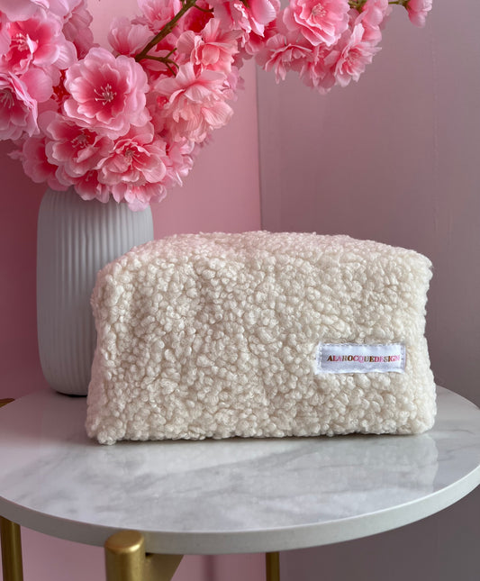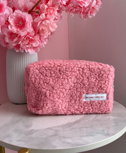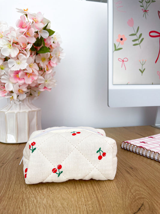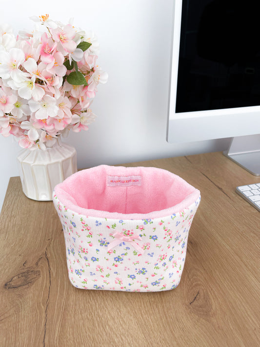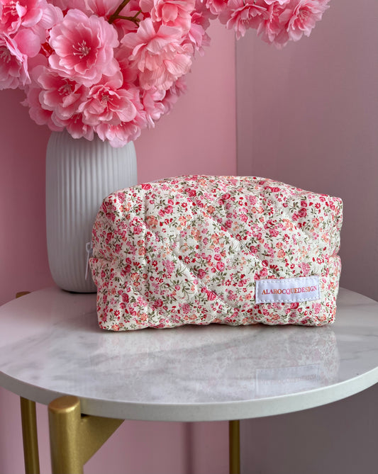 Pochette ronde | Fleurs roses, bleues et feuilles | Rangement cosmétique