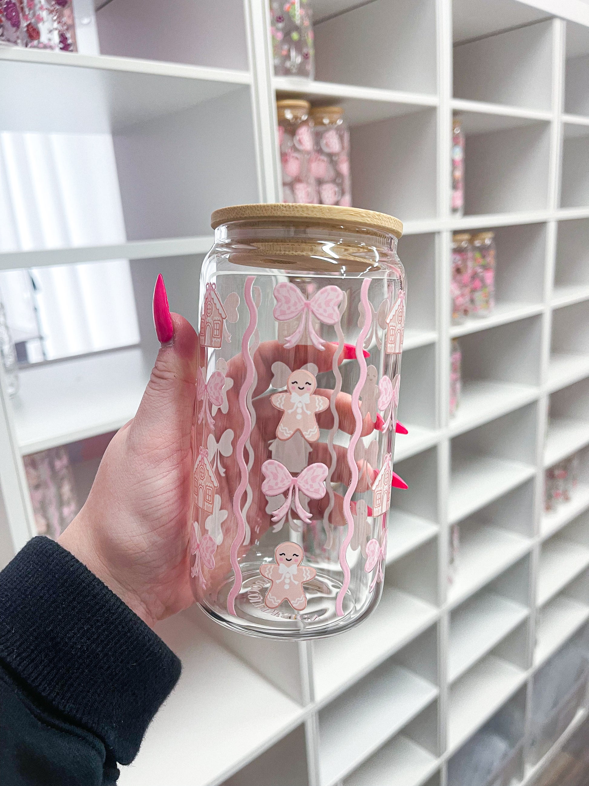 16 oz Glass | Christmas | Gingerbread and Bows