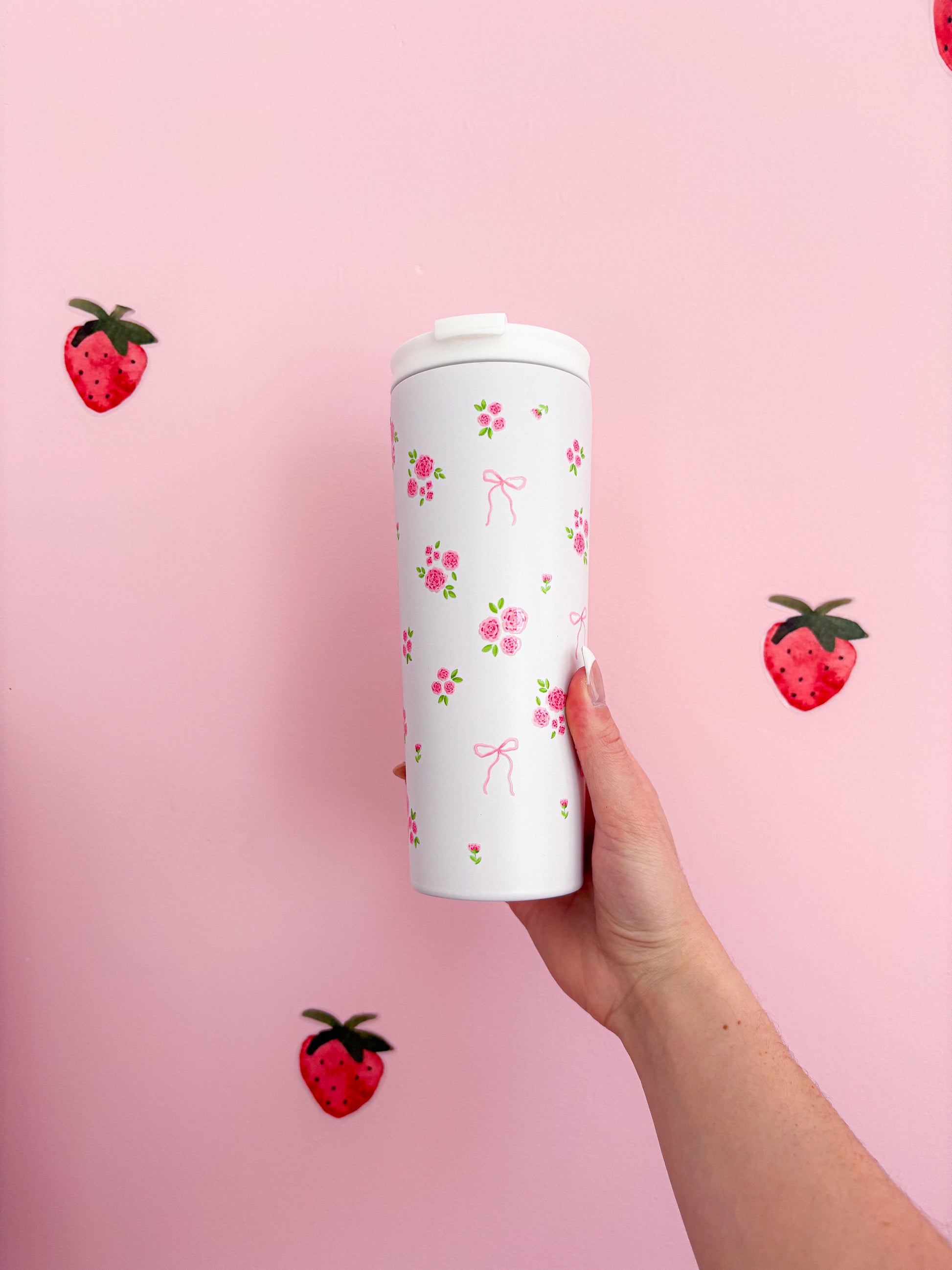 Bouteille isotherme 24 oz | Blanche | Printemps | Bouquets de roses et boucles
