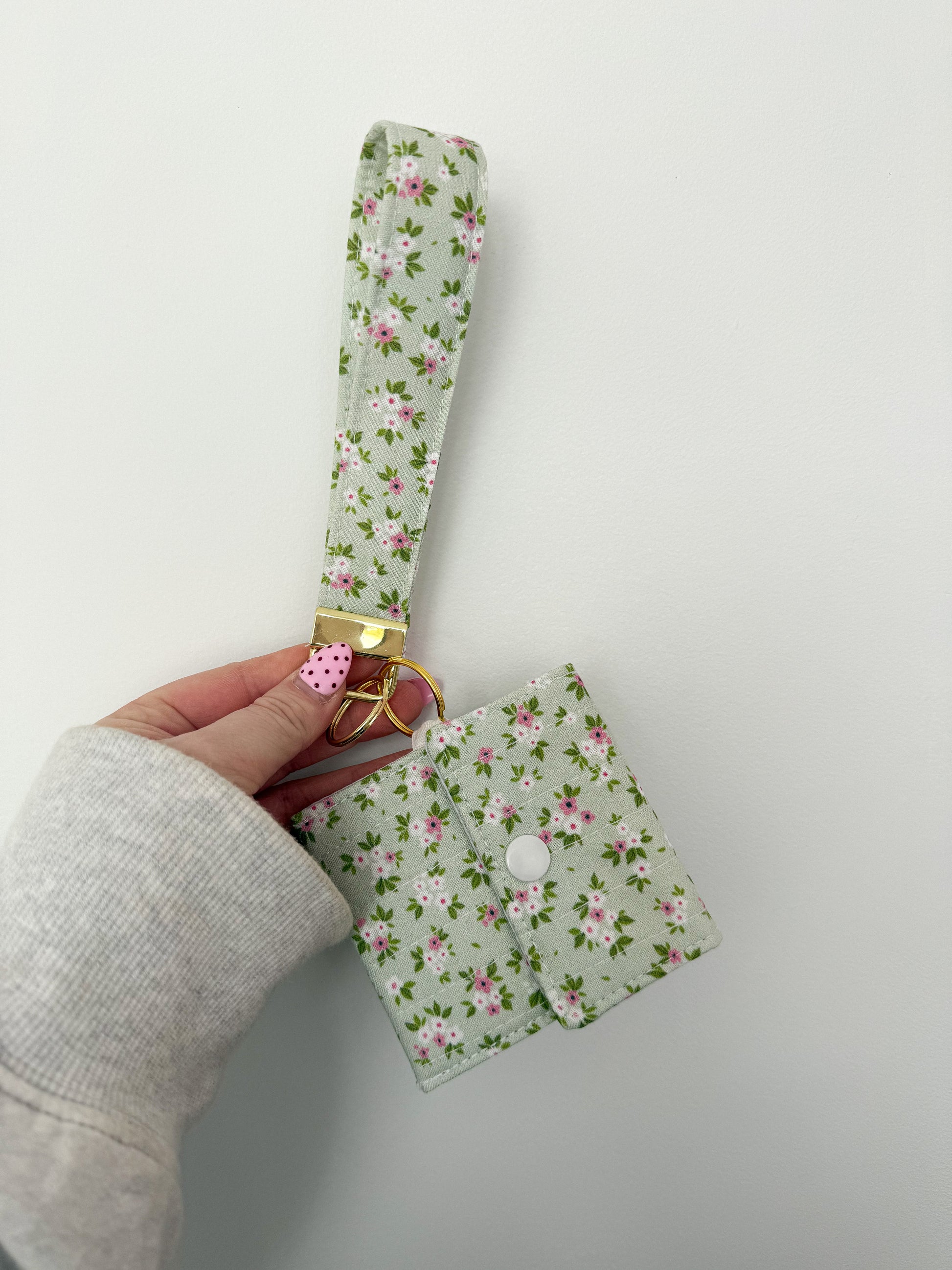Porte-clés et porte-monnaie | Sauge fleurs roses et blanches