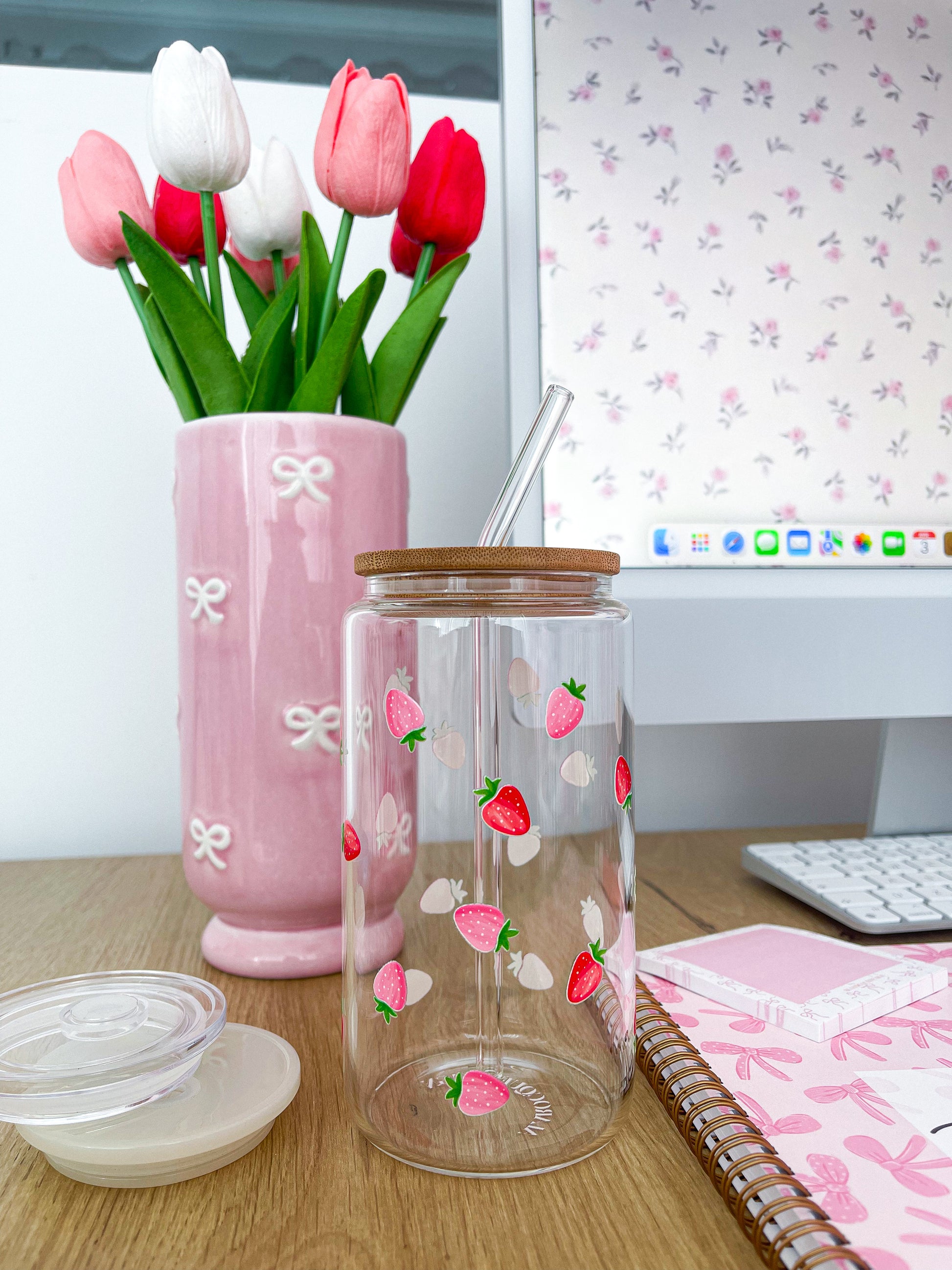 Verre 16 oz | Printemps | Fraises roses et rouges