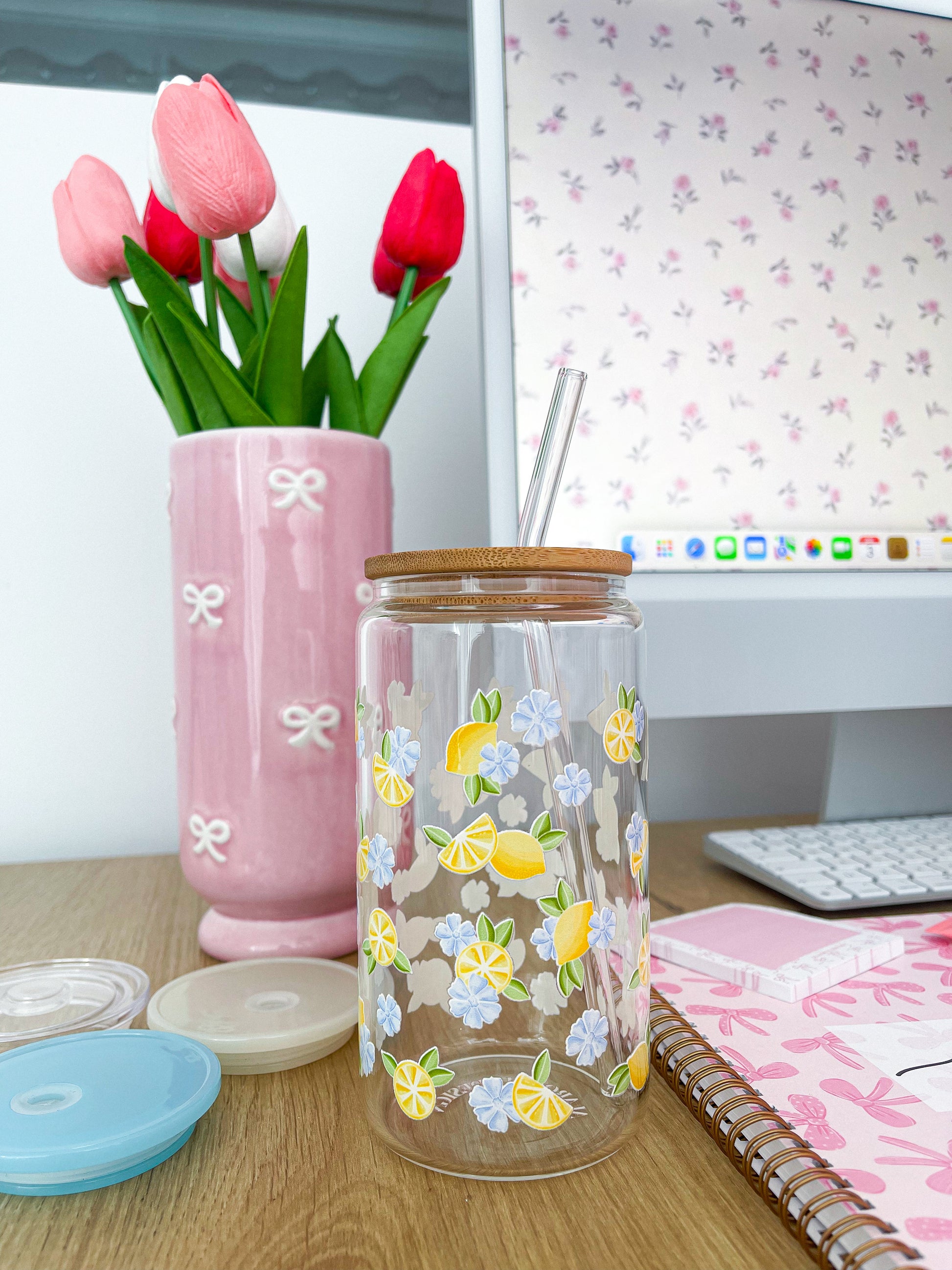 ✿ Inclut un couvercle en bambou & une paille en verre régulière.